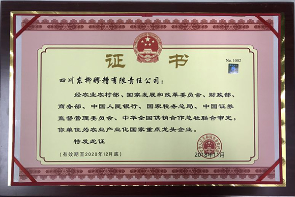 公司“东汉”牌商标荣获中国驰名商标、是农业产业化国家重点龙头企业、全国农产品加工业示范企业、全国“守合同、重信用”企业、全国食品工业科技进步优秀企业、中国保健协会会员单位、全国醪糟标准起草单位、四川省农业产业化经营重点龙头企业、建设新农村省级示范企业、四川省老字号品牌企业、四川省质量信誉AA级企业、四川省食品行业质量效益型先进企业、四川省旅游商品定点生产企业、四川省“小巨人”企业、四川省成长型中小企业、四川省科技型培育企业、四川省省级企业技术中心企业、四川省质量提升、质量监管示范试点企业、四川省打非治滥示范试点企业、四川诚信建设先进单位、四川省扶贫示范试点企业。产品先后荣获第26届奥运会中国体育代表团标志产品、绿色食品、中国国际农博会金奖、首届巴蜀食品节金奖、四川名牌、四川省第十届运动会指定产品、四川省消费者喜爱产品、达州市院士(专家)工作站、东柳醪糟为中国原产地地理标志保护产品和生态原产地保护产品、醪糟酿造技艺,获准为四川省非物质文化遗产,单瓶发酵原窝原汁醪糟新产品通过四川省科技成果鉴定,其工艺属国内首创,综合生产技术居国内领先水平。公司与大专院校、科研院所共同研制开发的全国首条醪糟自动化生产线,具有国内领先水平,填补了国内无醪糟自动化生产线的空白。2015年投资6800万元建设的3万吨糯米粉生产线技改项目于2016年1月正式投产,糯米粉生产能力新增3.6万吨,达到4.2万吨,全国排名第三,是西南地区最大的糯米粉生产加工基地企业。2001年通过1S09001:2000质量管理体系认证,2002年获出口食品卫生注册,2003年获自营进出口经营权,2005年通过了HACCP认证。